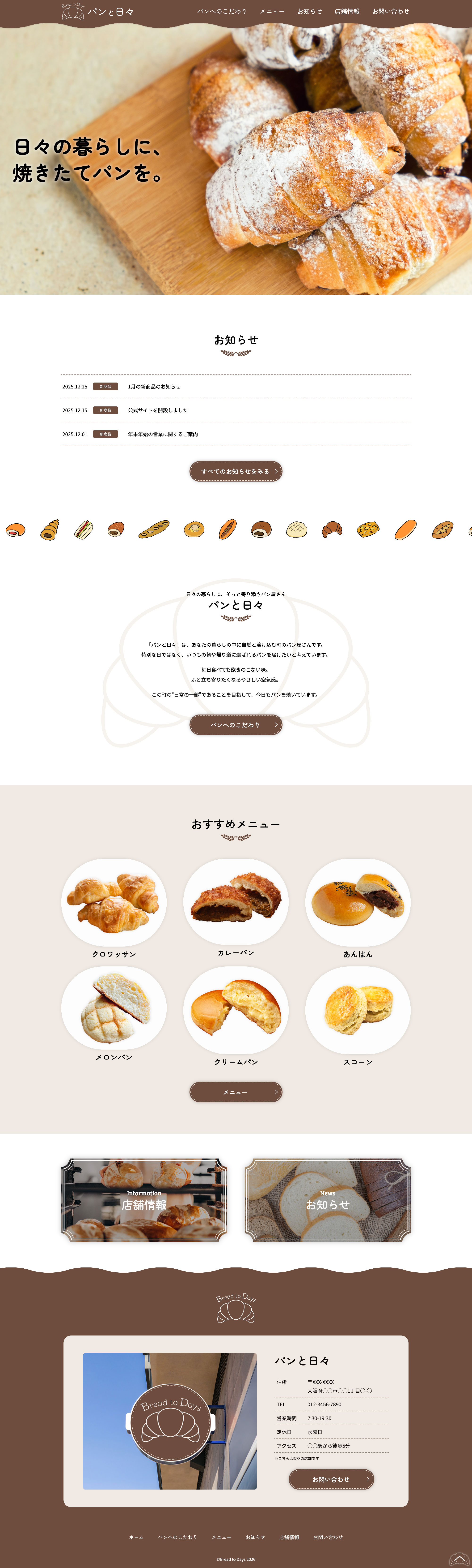 親しみやすい「町のパン屋さん」をコンセプトにした、架空のWebサイトを制作しました。
