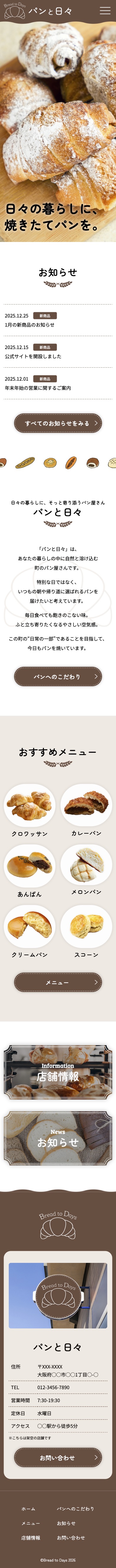 初めて訪れる方にもお店の雰囲気やパン作りへの想いが伝わるようにしています。また、日常的に利用する近隣住民を想定し、必要な情報に迷わずたどり着ける導線設計を意識しました。